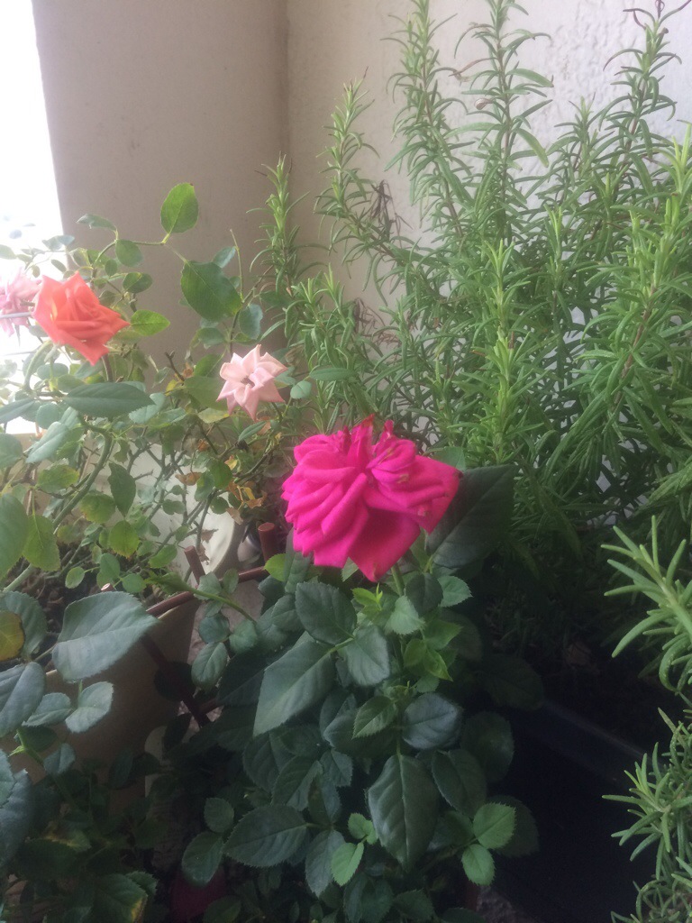 I am surrounding myself with herbs I feel that I need right now. Rosemary + Rose sweetly hanging out on my urban terrace. This is my magical reading spot. Something tells me I’ll be here all day!